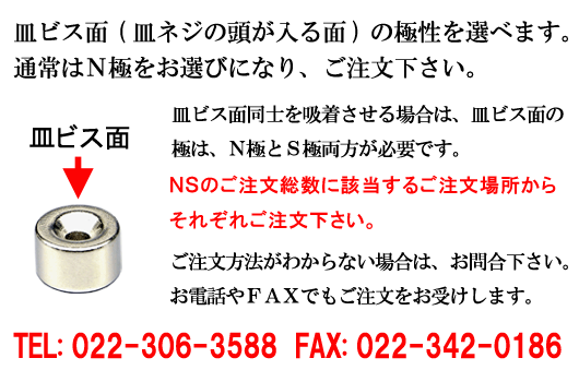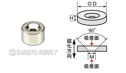 ※2.皿穴があるために割れやすいです。磁石を取扱う際は磁力で磁石と磁石を